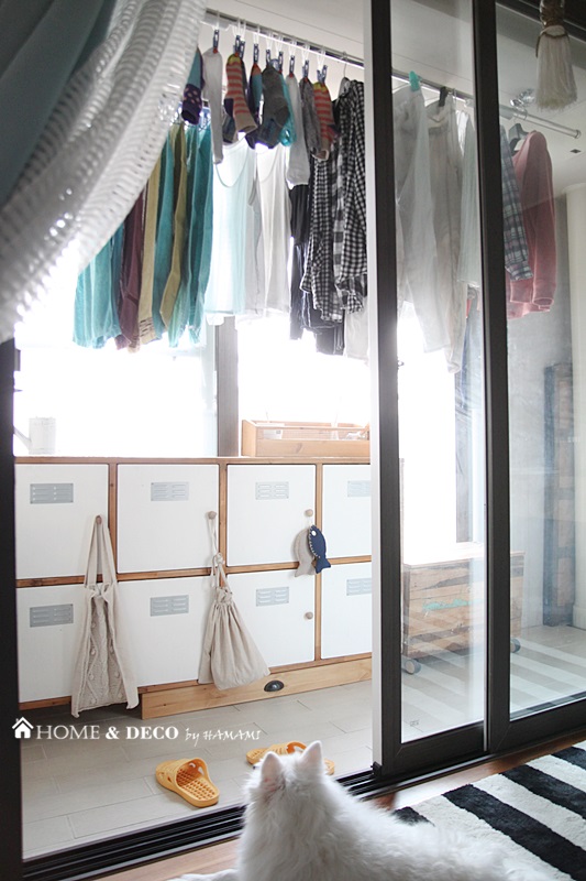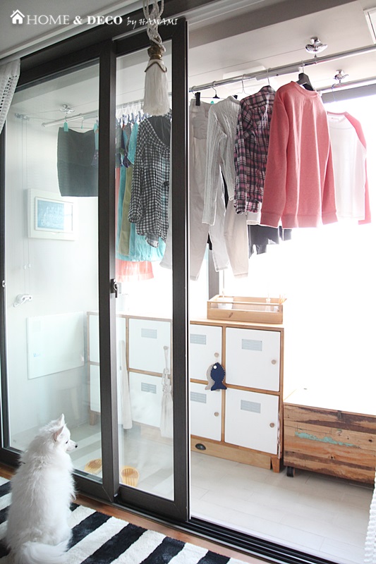빨래를 베란다 천정에 널 수 있게 되니 너무 편하거있죠!!