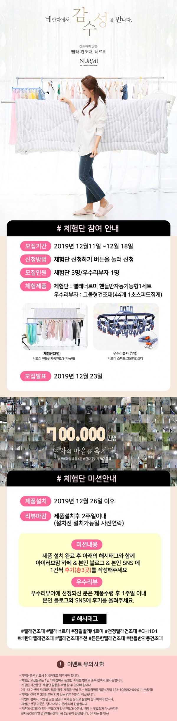 너르미 체험단 당첨자 3분에게는 핸들반자동 기능형 건조대를 무상으로 설치하여 드렸습니다.
