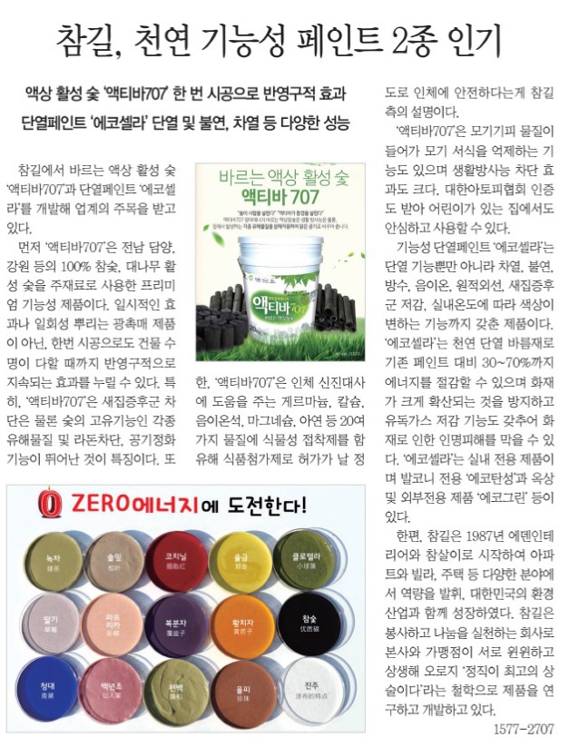 참길, 천연 기능성 페인트 2종 인기 (장식신문 제422호) 페이지 정보 작성자 최고관리자 작성일21-06-30 16:06 조회34,632회 댓글0건 관련링크 본문 참길, 천연 기능성 페인트 2종 인기 (장식신문 제422호에 게재된 내용입니다.) 댓글목록 등록된 댓글이 없습니다. 이전글 다음글 목록